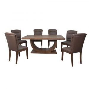 Comedor de 6 sillas, elaborado en madera sólida, tela importada de alto gramaje, acabado 100% poliuretano.