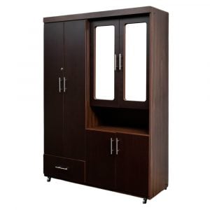 Melamina BI Tono. Jalador acero inoxidable. 4 rodos.  2 chapas. 2 sercheros. 1 espejo.