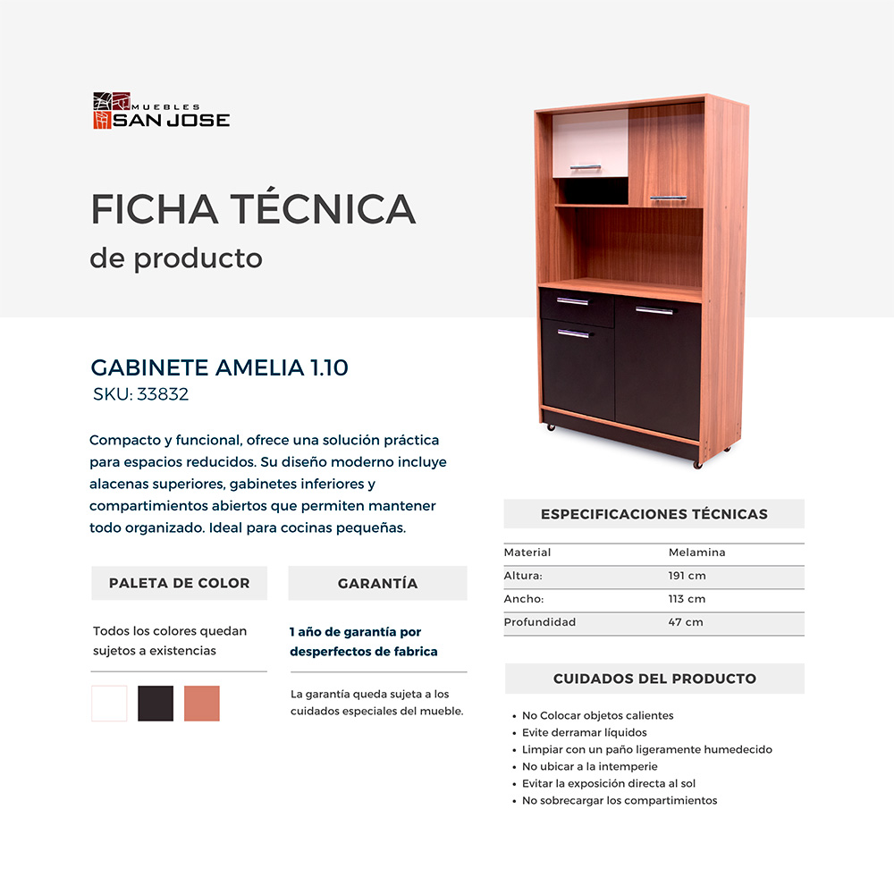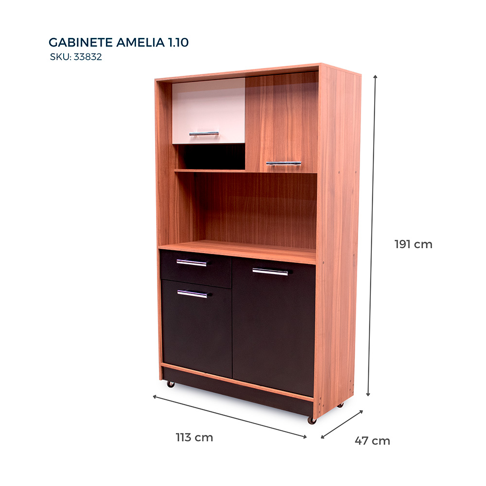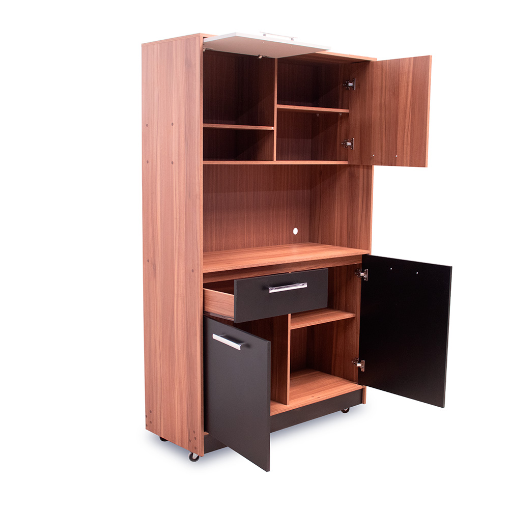Estructura en melamina, frentes de puertas y gaveta en color noce costa