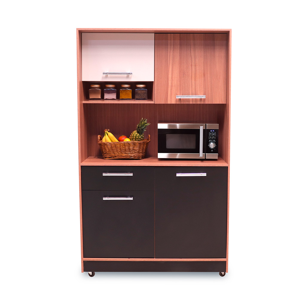 3 cuerpos, 4 gavetas, rodos para facilitar movimiento, elaborado en melamina