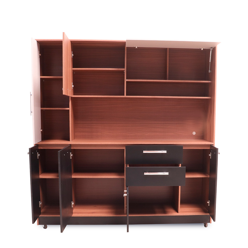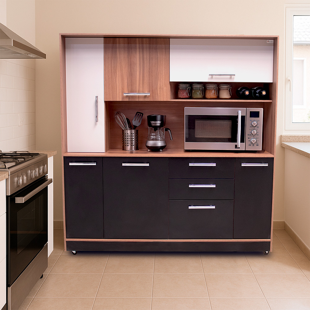 Estructura en melamina, frentes de puertas y gaveta en color noce costa