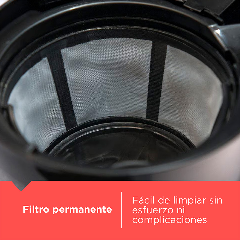 Capacidad para 35 tazas, fabricado de acero inoxidable, luz indicadora, función de protección que apaga automáticamente la unidad si no tiene agua adentro