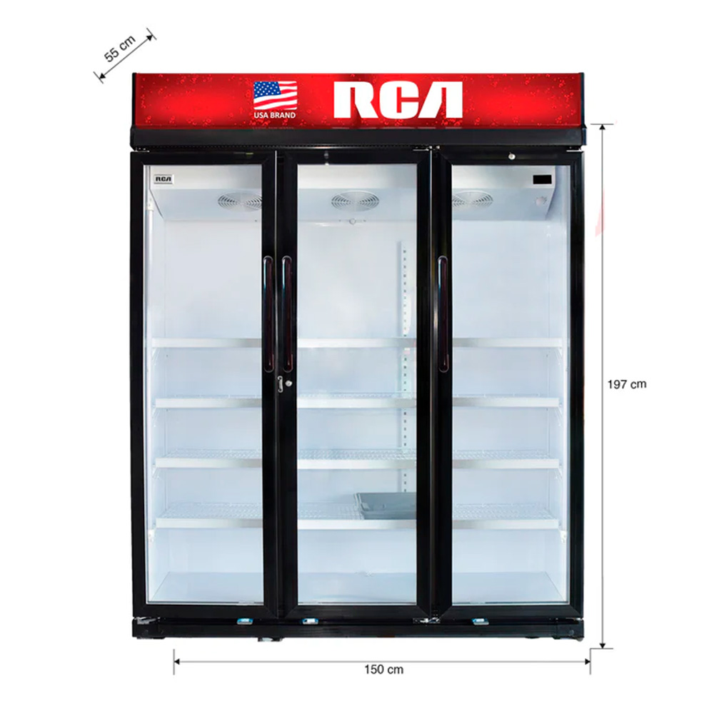 500 litros, Luz LED interna y en la cenefa, parrillas de alambrón, Rodos 360° con freno, vidrio térmico templado