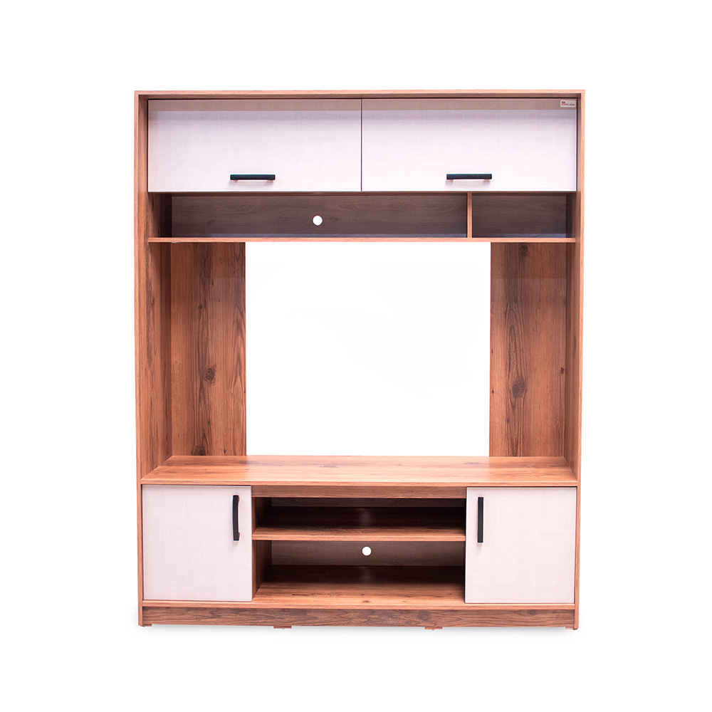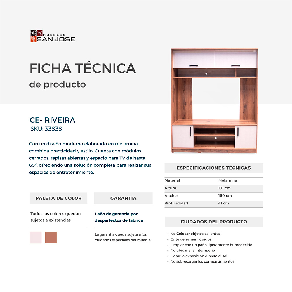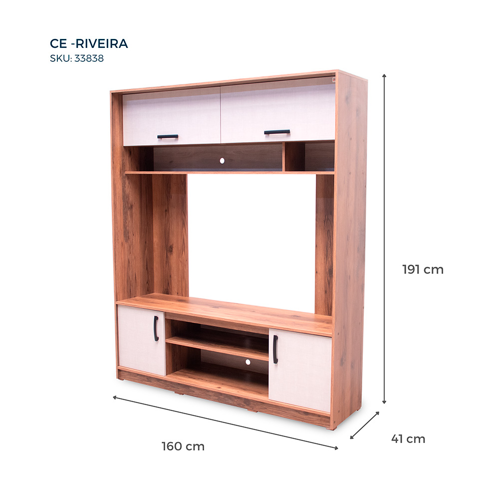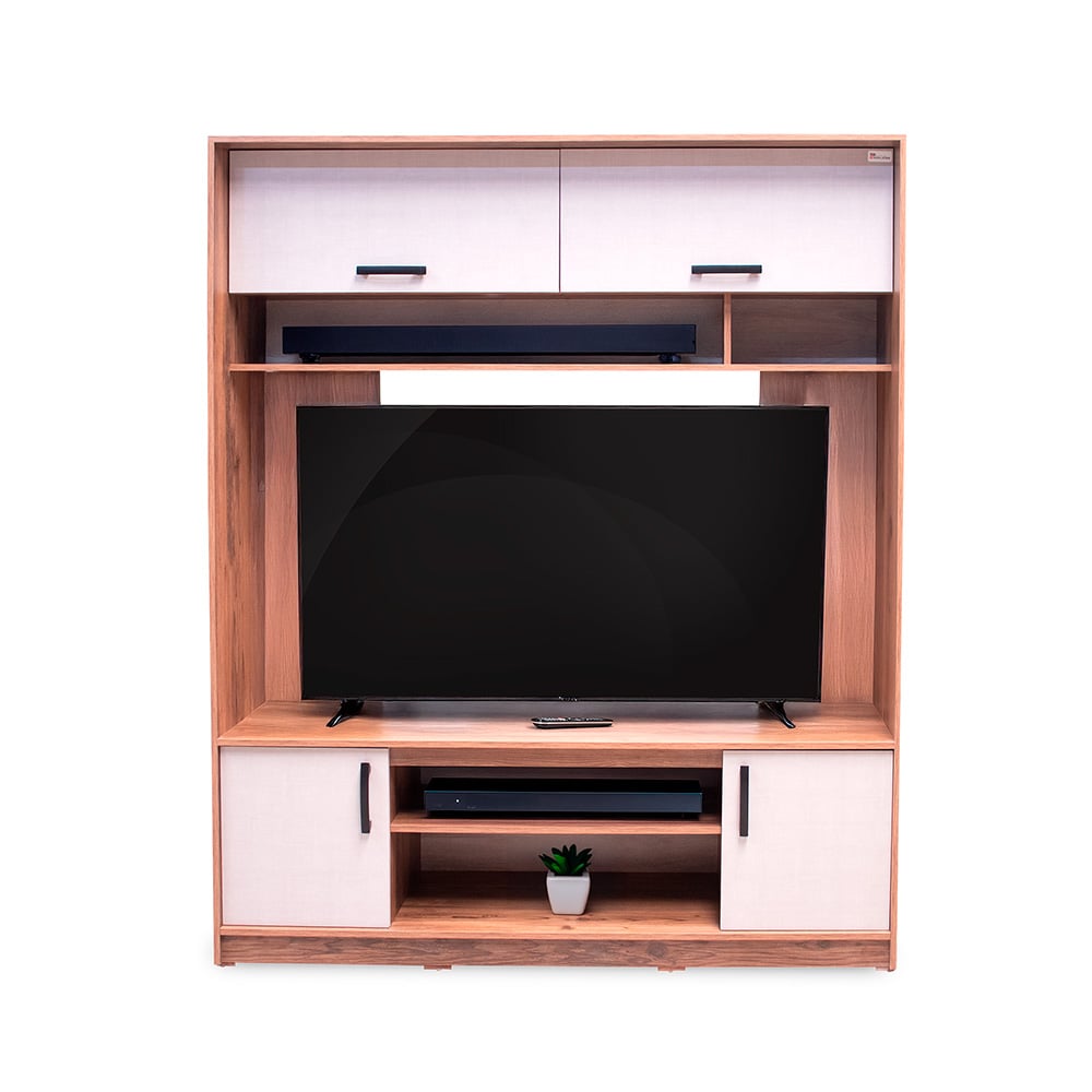 Para TV de 50″ Elaborado de melamina, con entrepaños laterales fijos de vidrio