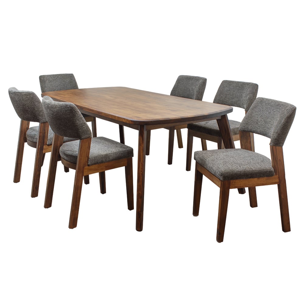 6 Sillas, tablero en aglomerado melaminico, estructura de mesa en tubería industrial, tapices en tela chenille
