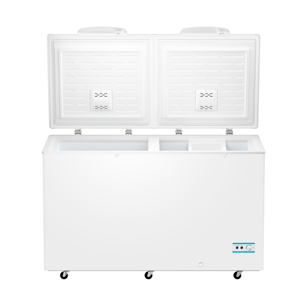 505 litros, horizontal tapa sólida, Tecnologia Manual, doble cerradura, ruedas resistentes