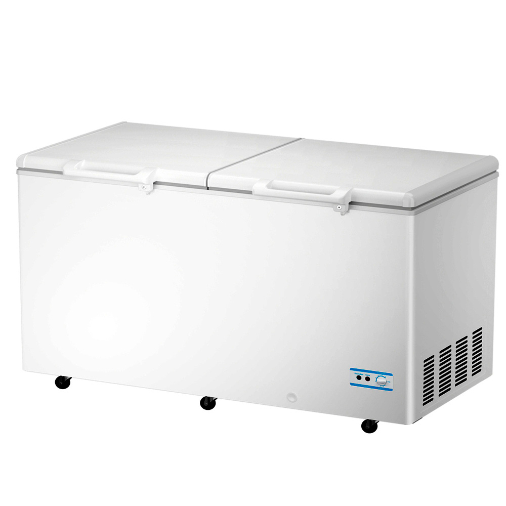 535 litros, horizontal tapa sólida, Drenaje frontal, Chapa de seguridad, Rodos resistentes
