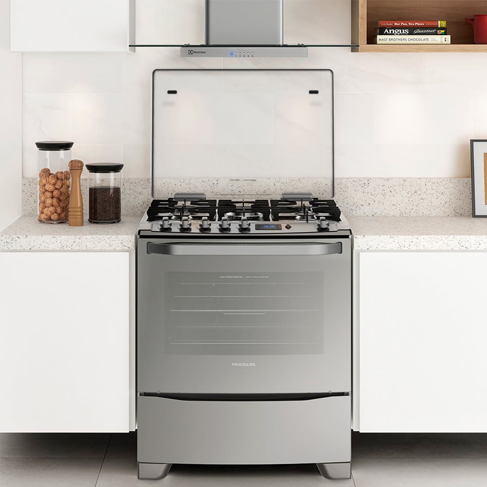 6 hornillas, a Gas, color Silver, encendido electrónico, parrillas porcelanizadas, quemadores sellados, luz en el horno