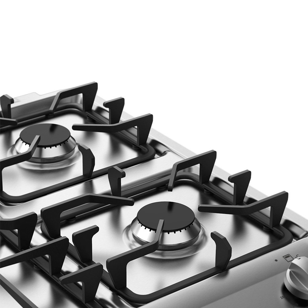 4 hornillas, a Gas, color Silver, Tecnología Perfect Cook, perrillas de fundición, quemadores Fast Cook + Estándar