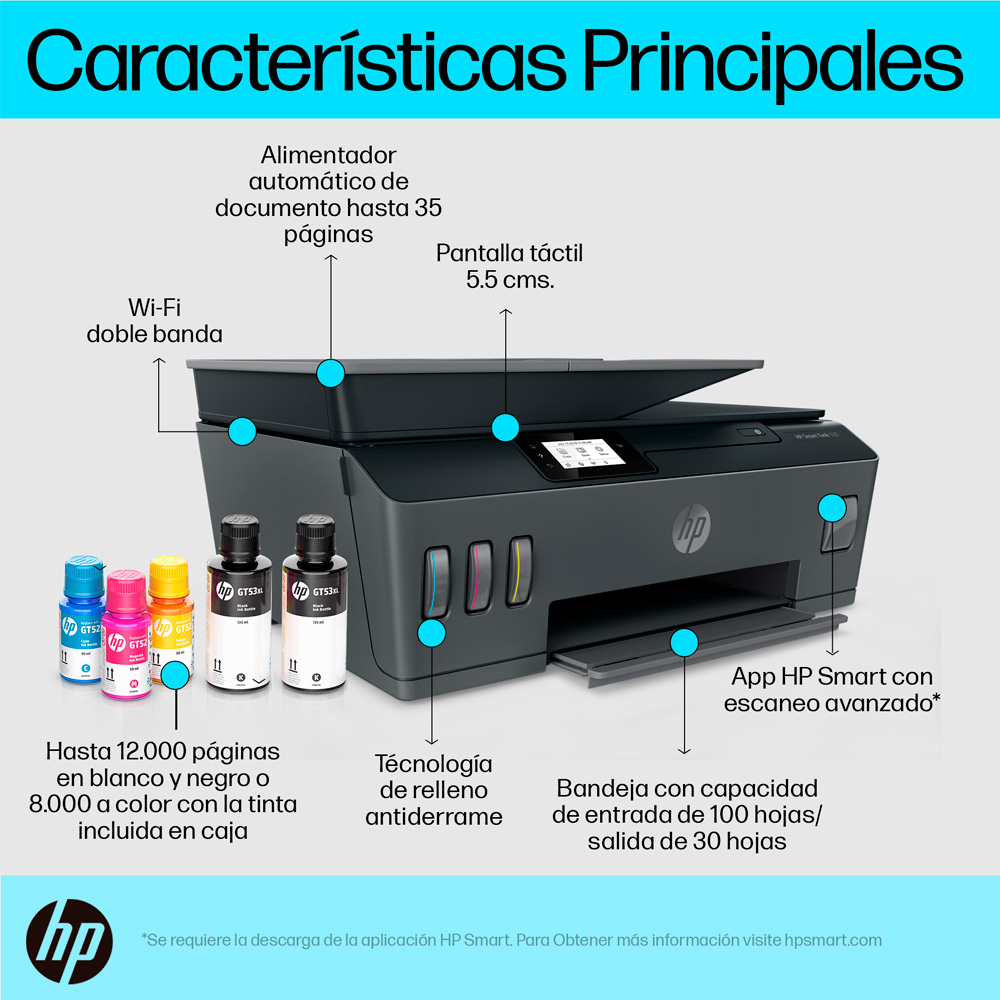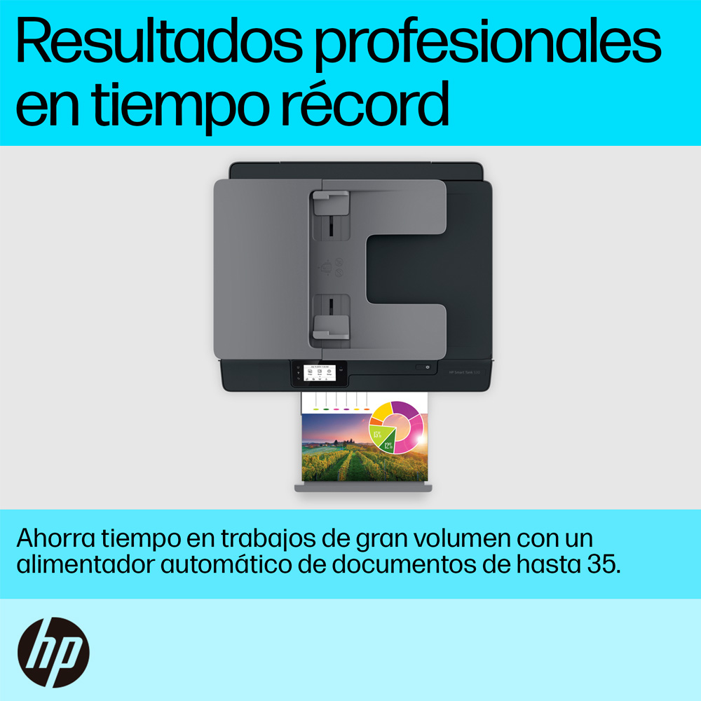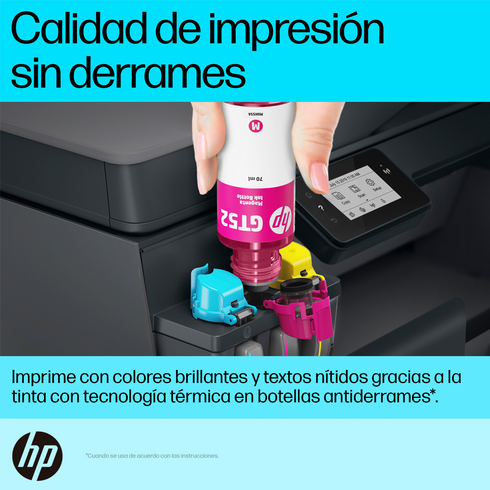 Sistema de tinta continua, gran capacidad en bandeja, conectividad con USB
