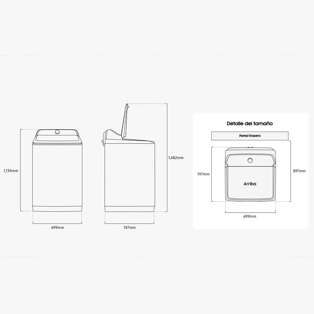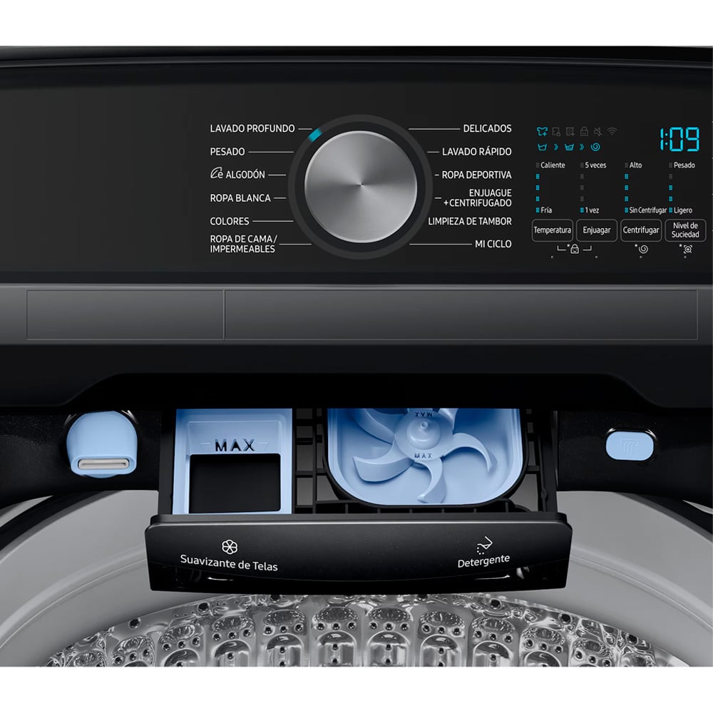 Carga superior, 19Kg, con agitador, tapa metálica, 4 niveles de centrifugado más automático