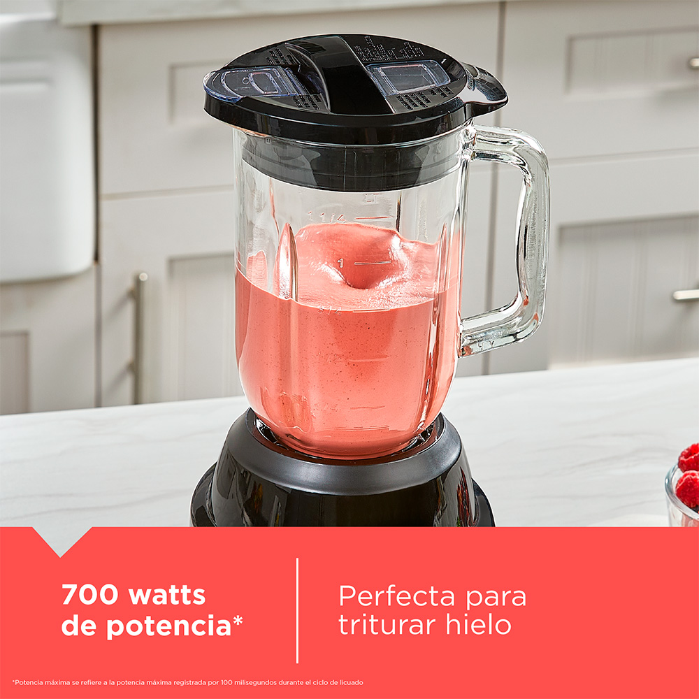 Jarra de vidrio, Clasica Oster, potente motor de 600 vatios, pulveriza hielo con la cuchilla trituradora de hielo, refractario Boroclass medidora