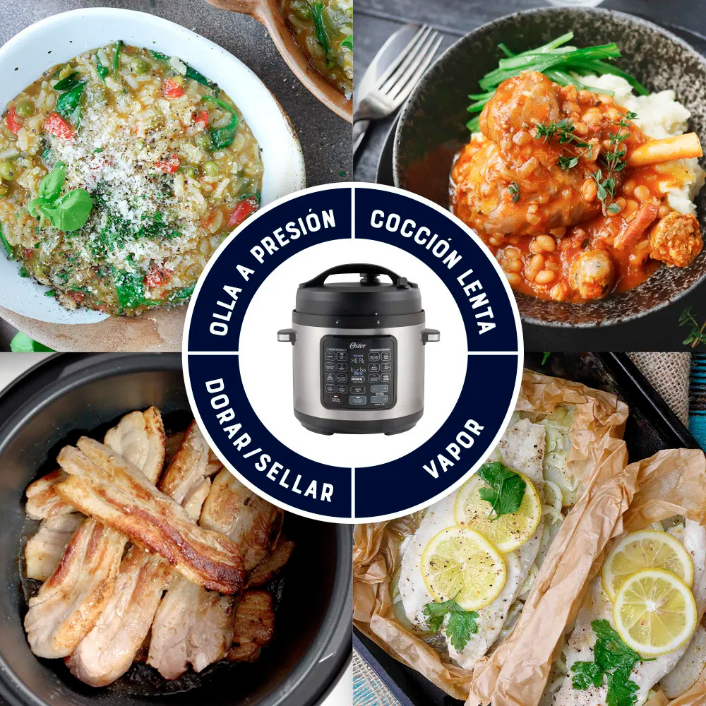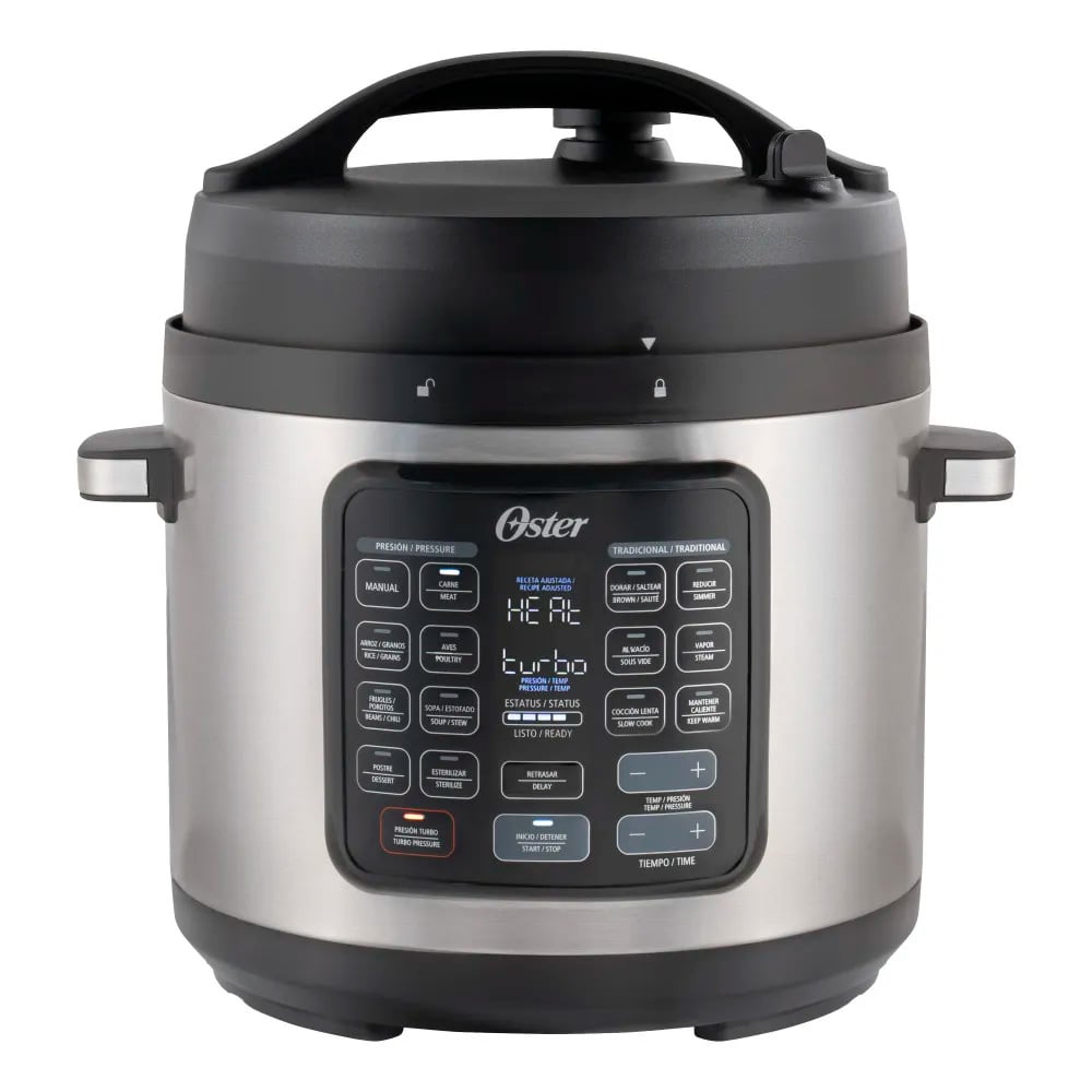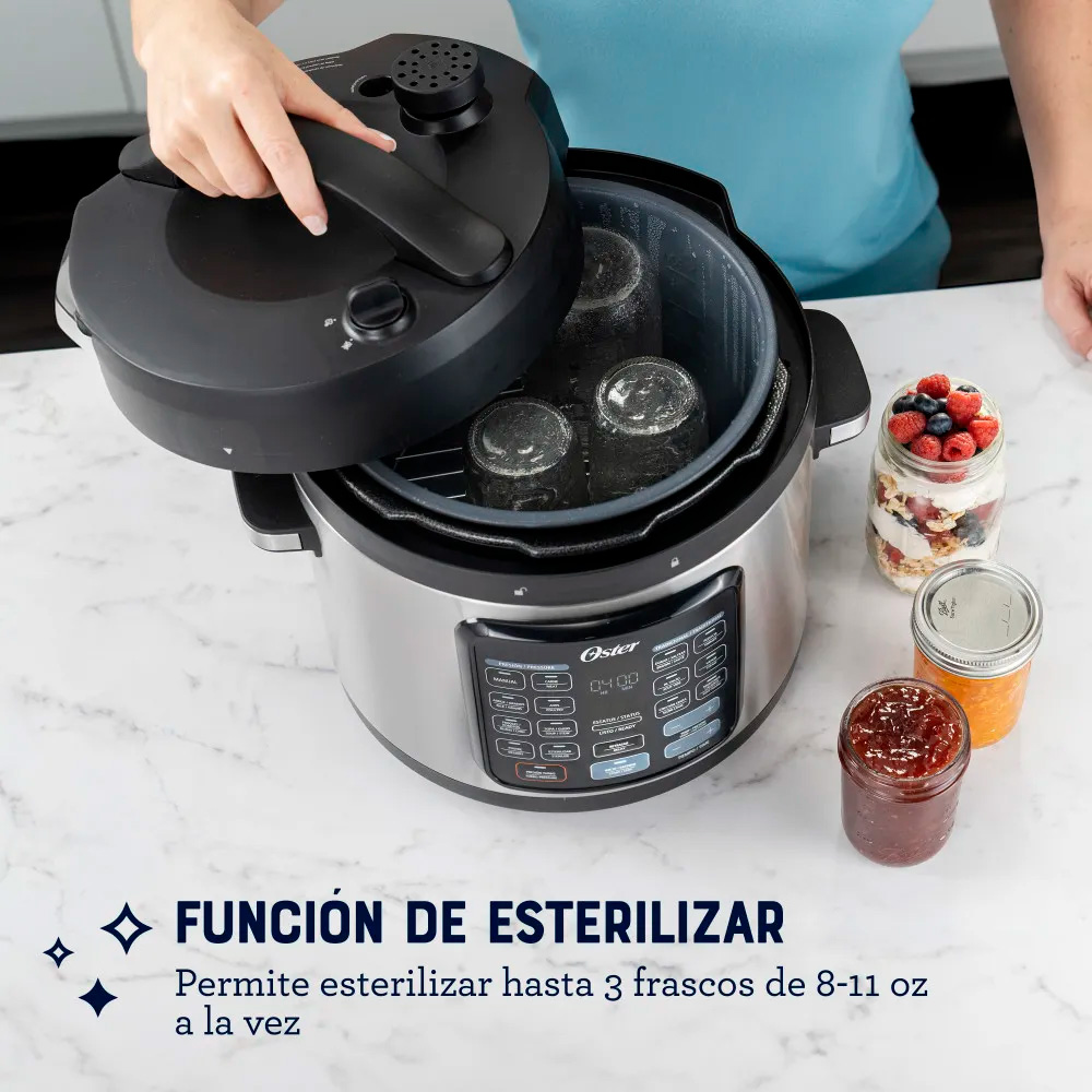Capacidad 7 litros, fabricación de aluminio durable y ligero, 4 válvulas de seguridad para mayor confiabilidad, tapa con cierre de seguridad