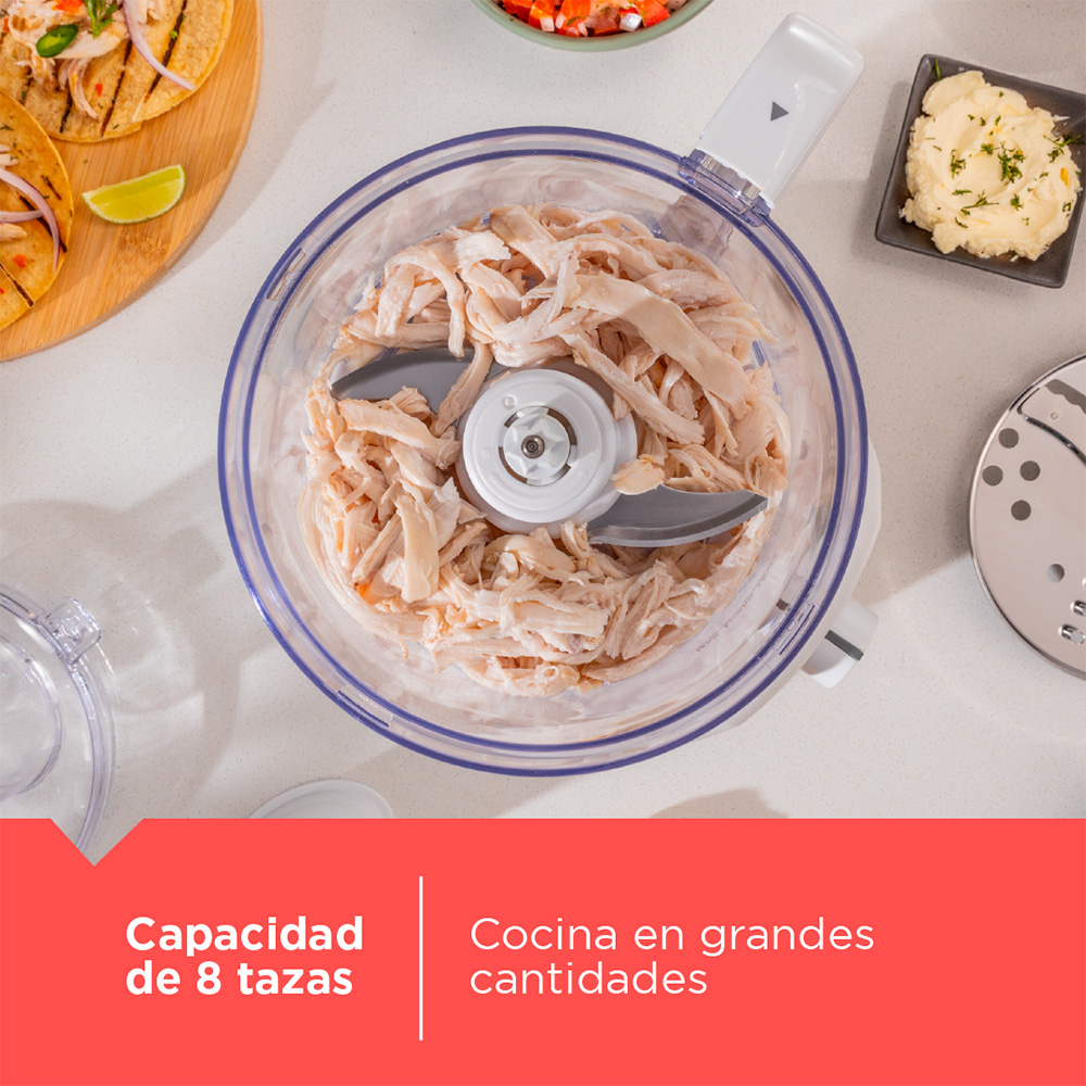 Capacidad de 3 tazas, 175 watts de potencia, control de pulso de un solo toque, orificios de aceite, cuchilla para picar de acero inoxidable