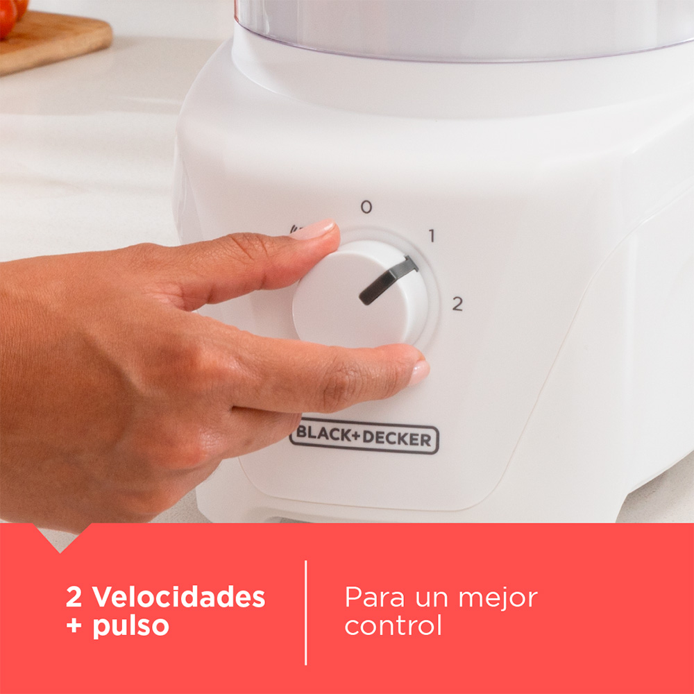 Jarra de plástico, de 2 velocidades, potencia de 350 watts, color blanco, tipo de control con perilla, sistema de impulsión totalmente metálico All-Metal Drive