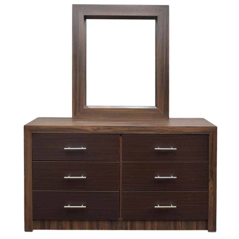 4 cuerpos, 2 gavetas, 2 espejos, rodos para facilitar movimiento, elaborado en melamina