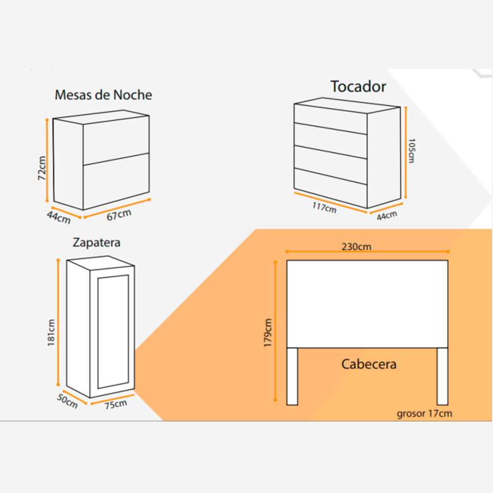 5 piezas, cabecera para Matrimonial – Queen – King, estructura en aglomerado melaminico