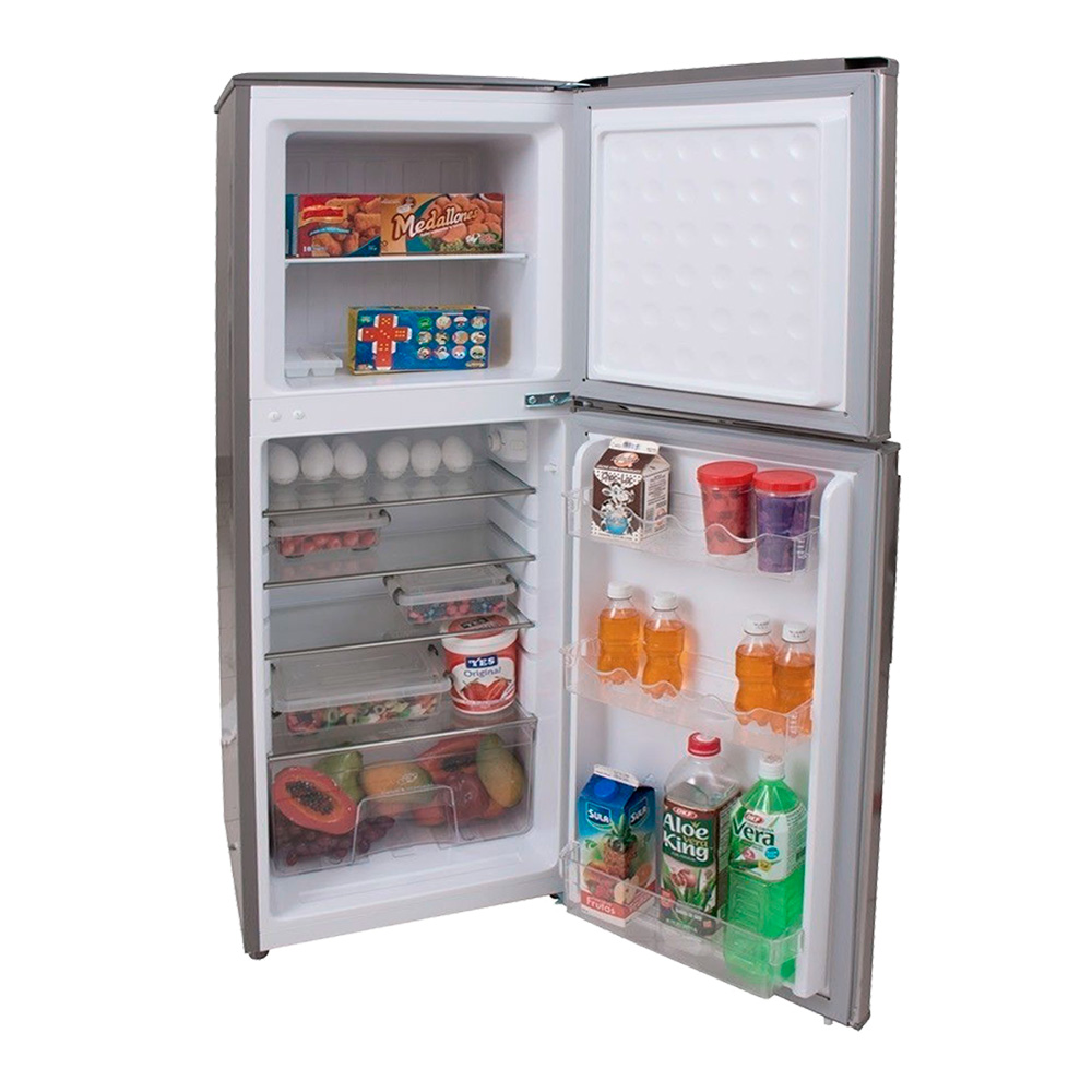 Capacidad de 100 litros, compartimiento congelador, pernos niveladores, manija incrustada, parrillas de alambrón