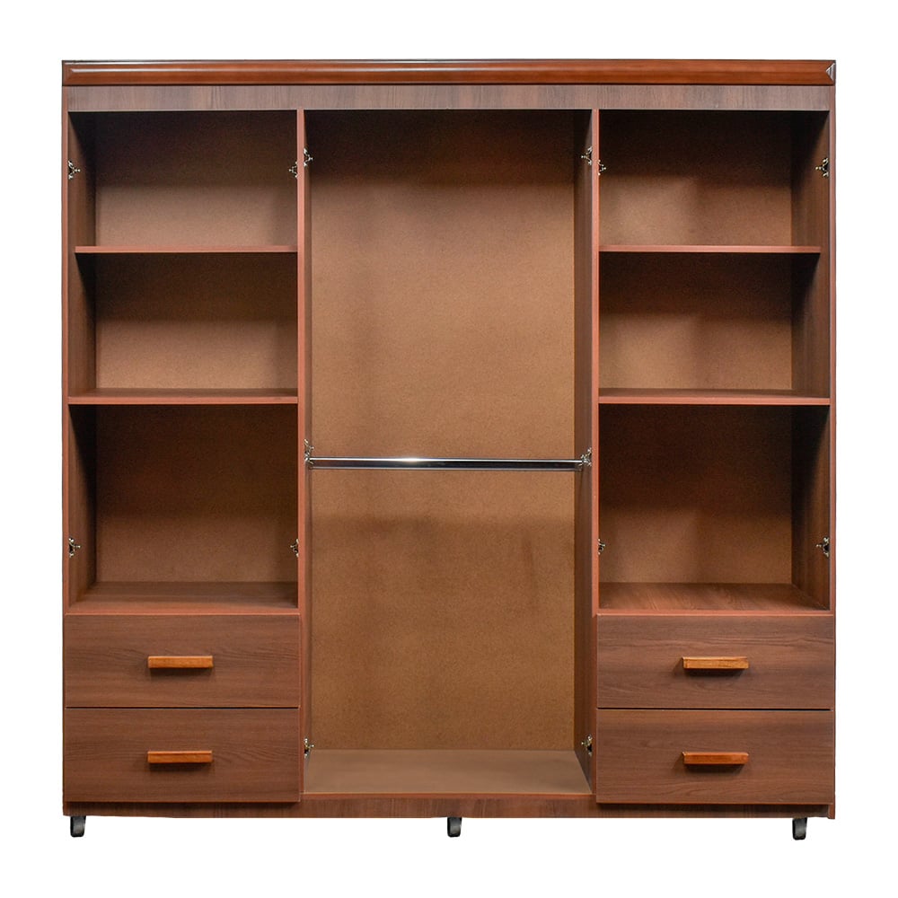 2 cuerpos, 2 gavetas, rodos para facilitar movimiento, elaborado en melamina