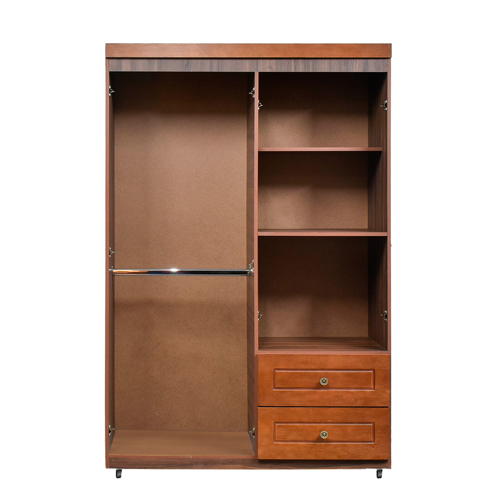 Estructura en melamina, frentes de puertas y gaveta en color noce costa